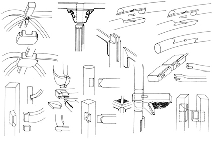 關于榫卯的種類,有很多,就其使用的部位、功能和形態而言,大體可分為明榫、暗榫、套榫、夾頭榫、插肩榫、抱肩榫、鉤掛榫、燕尾榫、楔釘榫及走馬銷等。